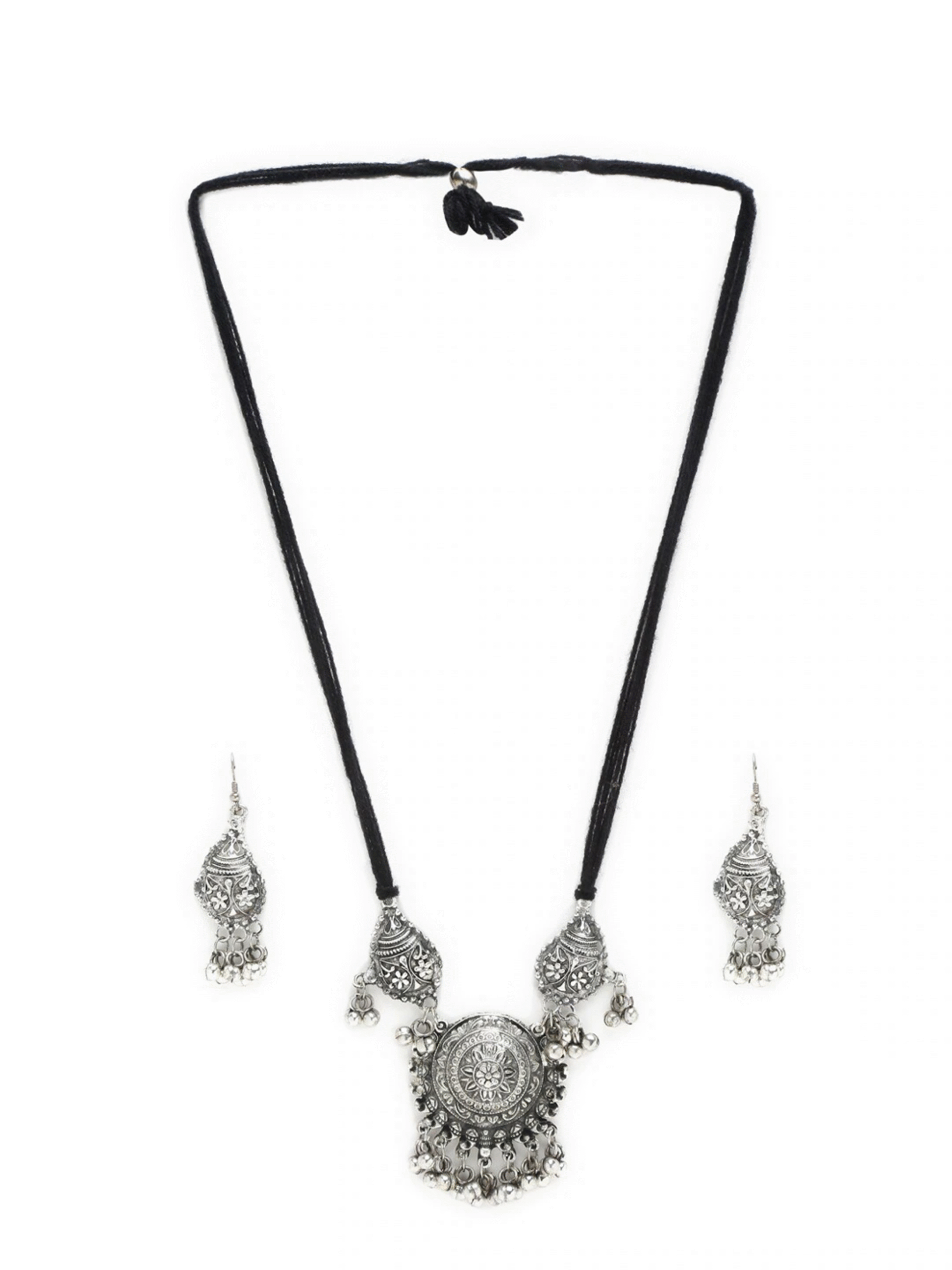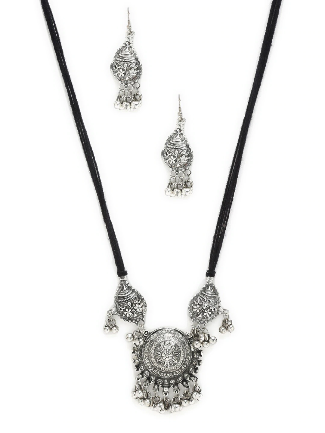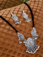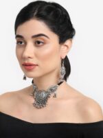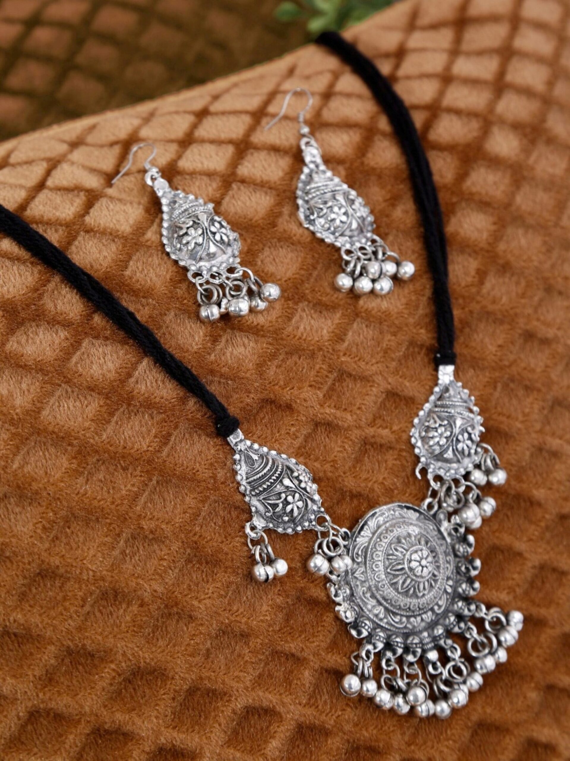 • Classic look Silver Oxidised Necklace set with Jhumka earrings for women to wear,