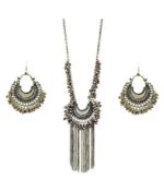 - Classic look Silver Oxidised Necklace set with Jhumka earrings for women to wear,