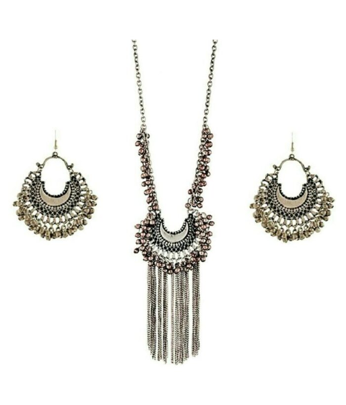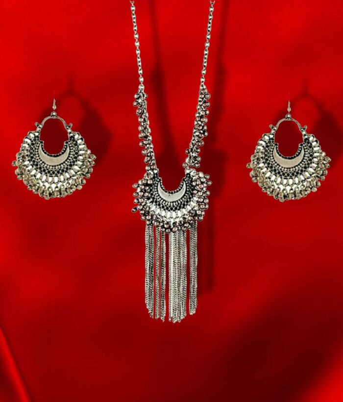 - Classic look Silver Oxidised Necklace set with Jhumka earrings for women to wear,