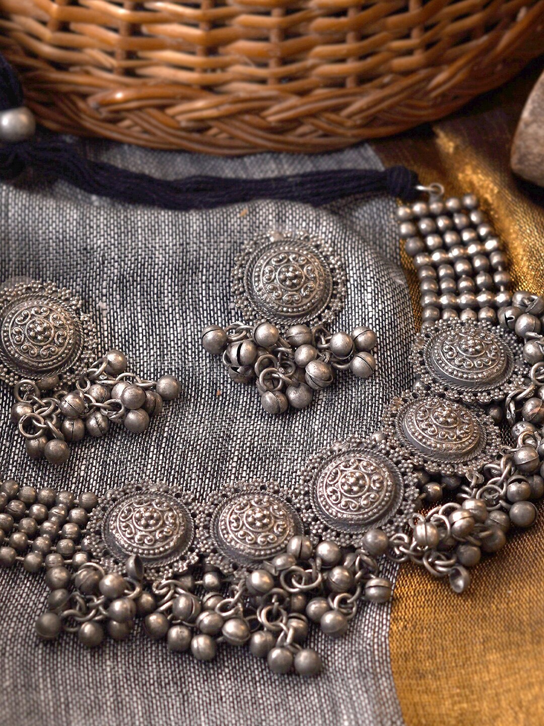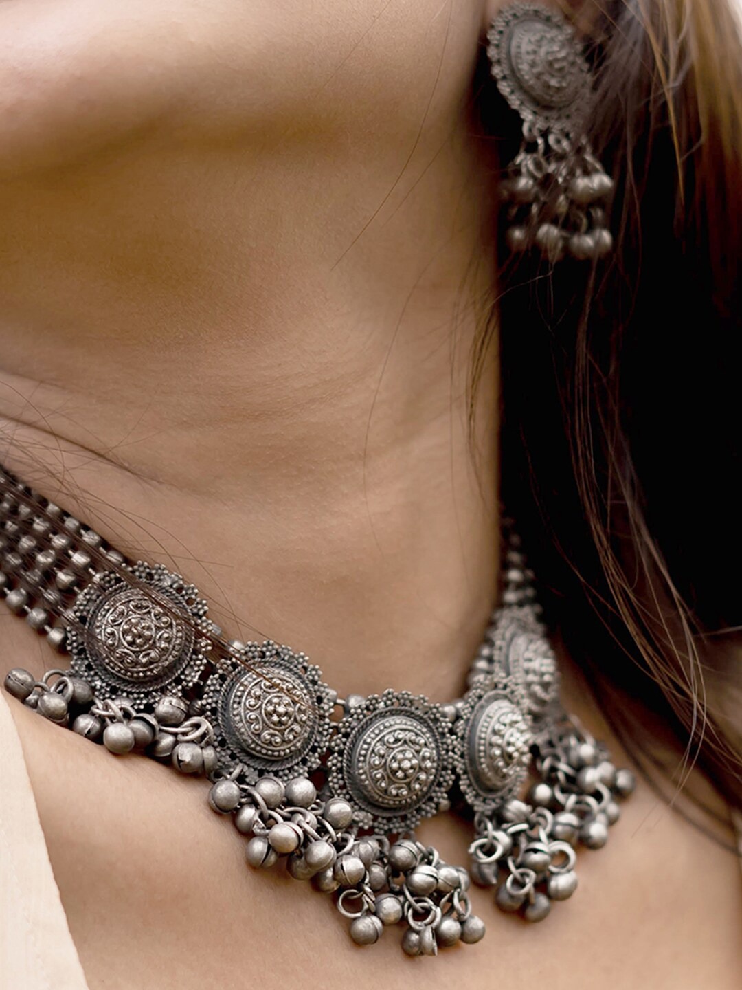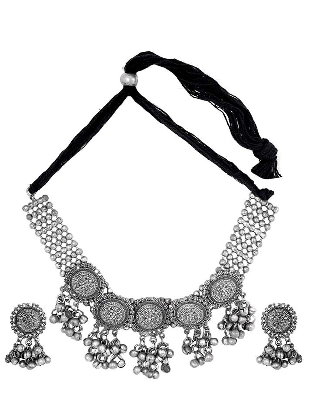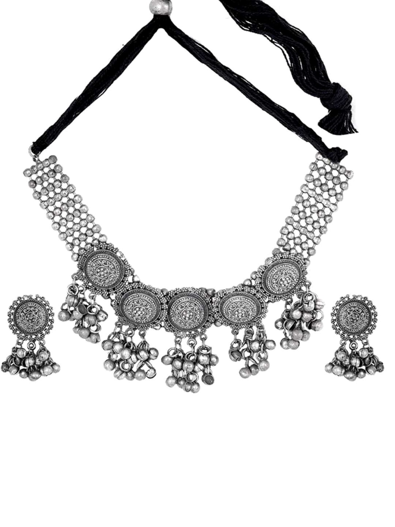 - Latest traditional oxidised silver necklace jewellery set