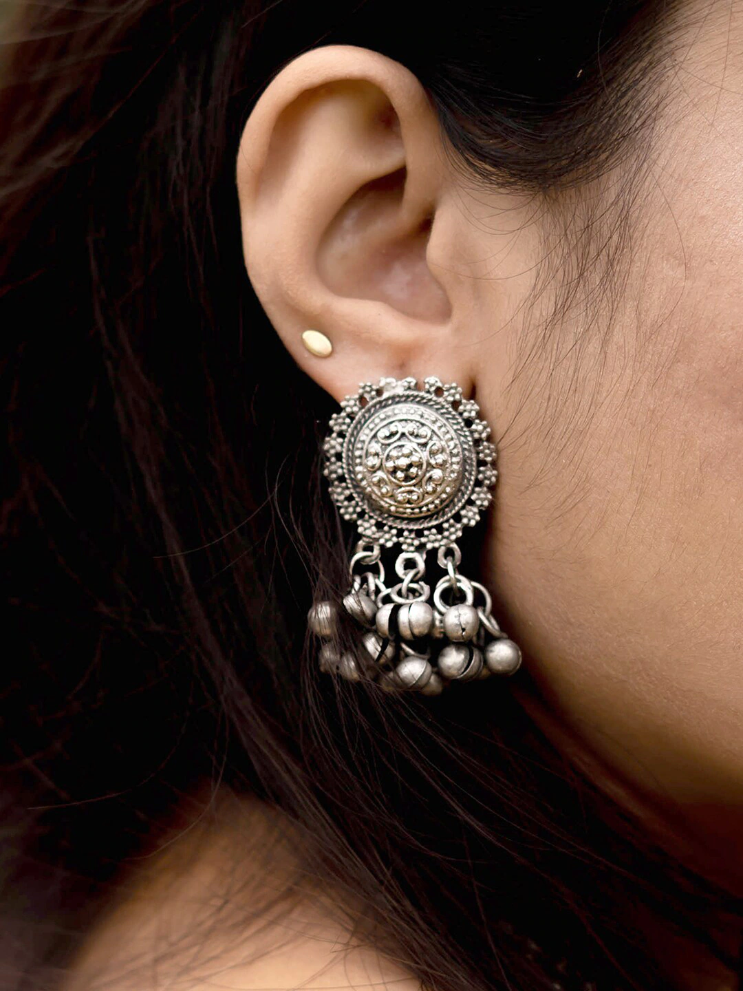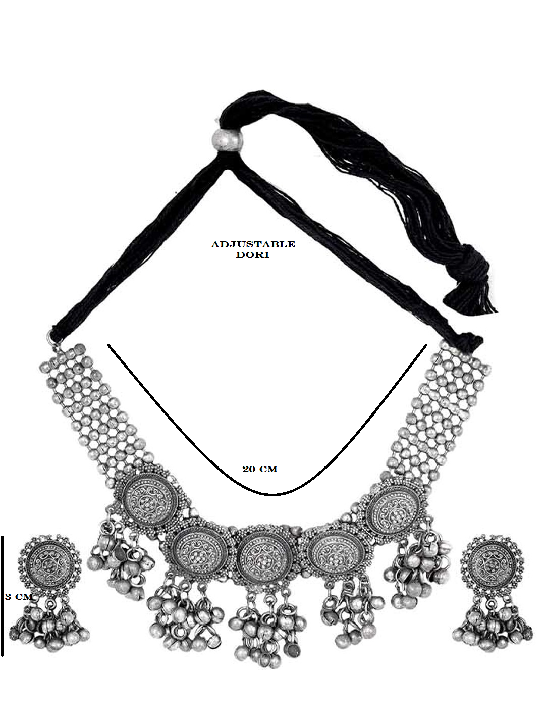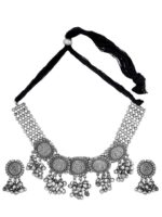 - Classic look Silver Oxidised Necklace set with Jhumka earrings for women to wear,