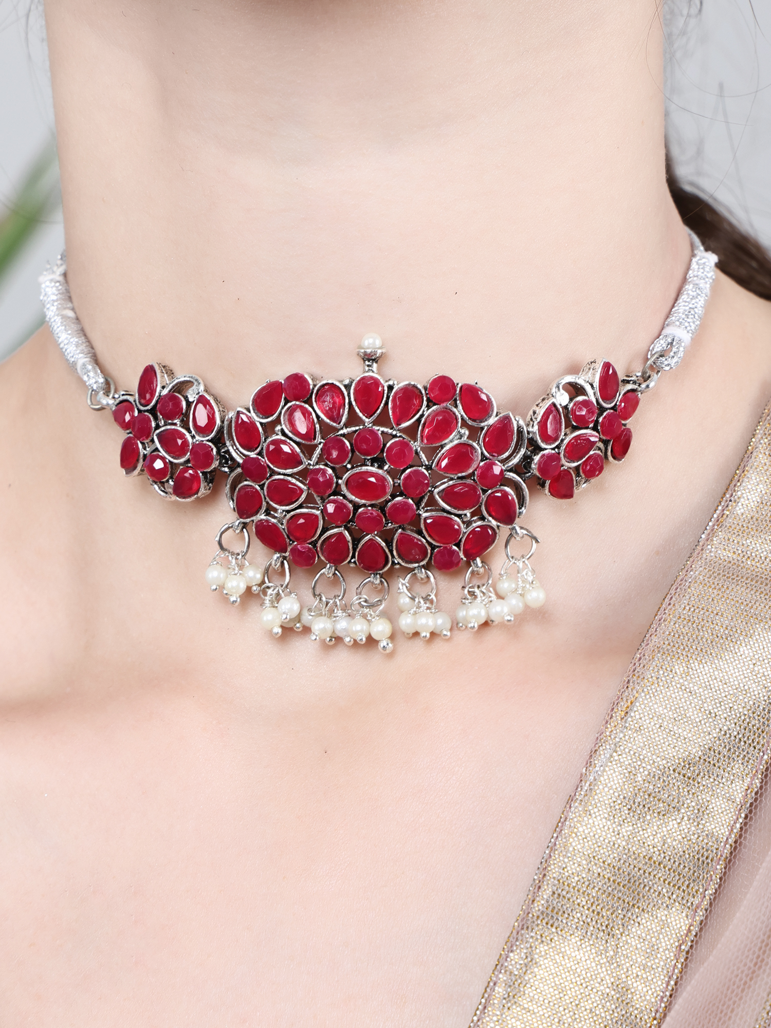 Oxidised Maroon Choker