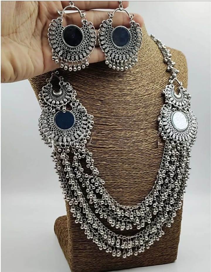 • Latest traditional oxidised silver necklace jewellery set