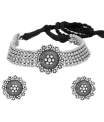 - Classic look Silver Oxidised Necklace set with Jhumka earrings for women to wear,