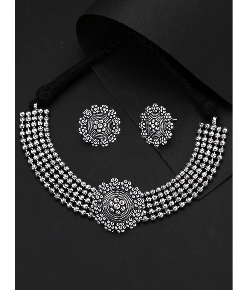 - Classic look Silver Oxidised Necklace set with Jhumka earrings for women to wear,