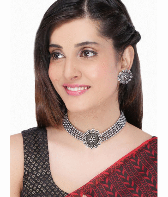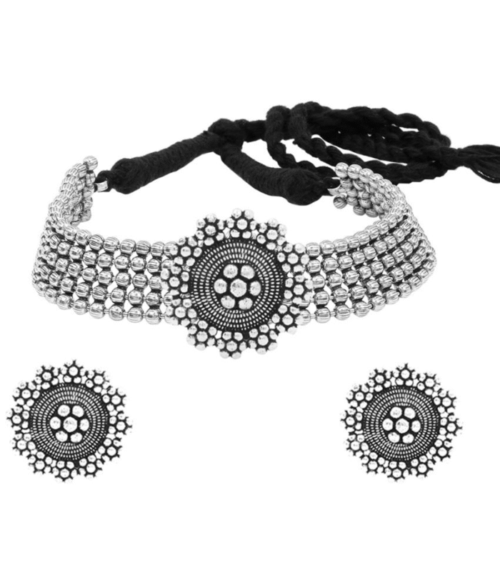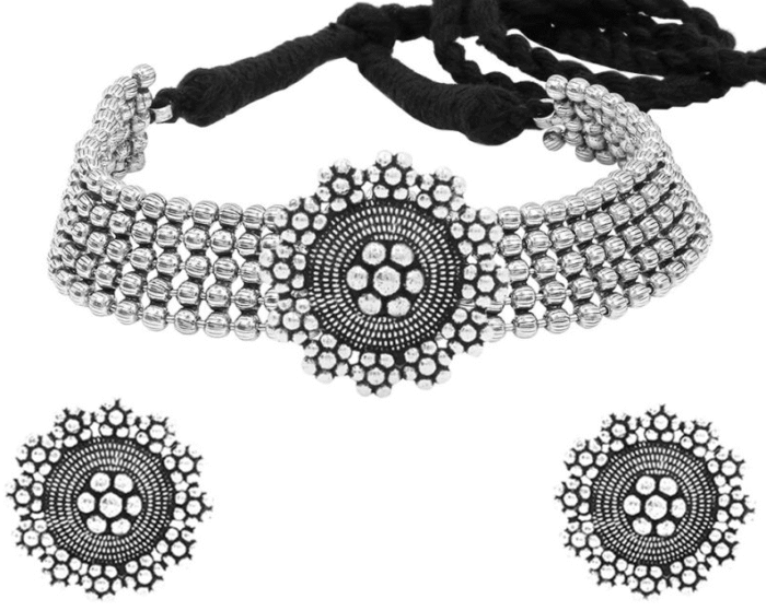 - Latest traditional oxidised silver necklace jewellery set