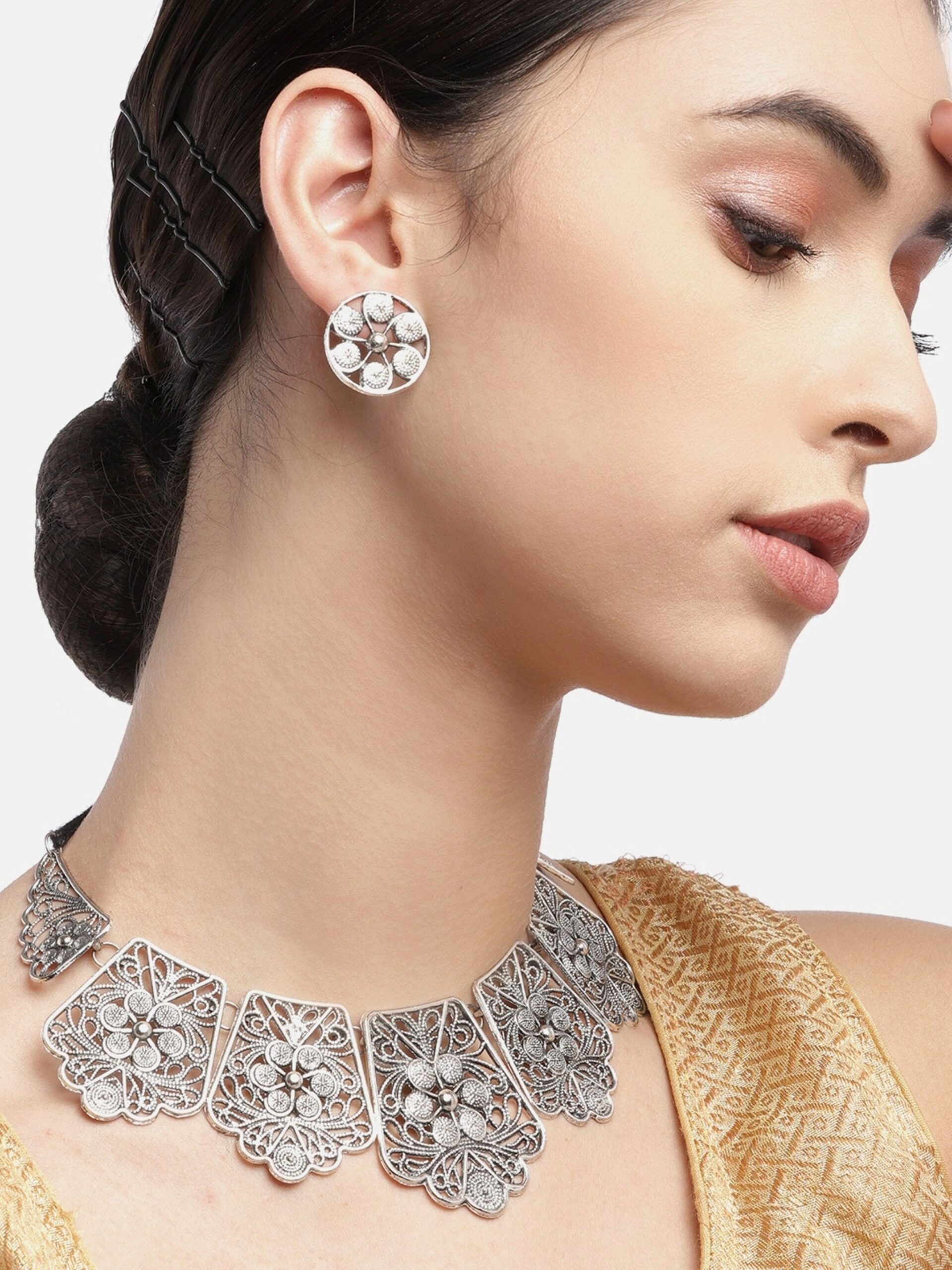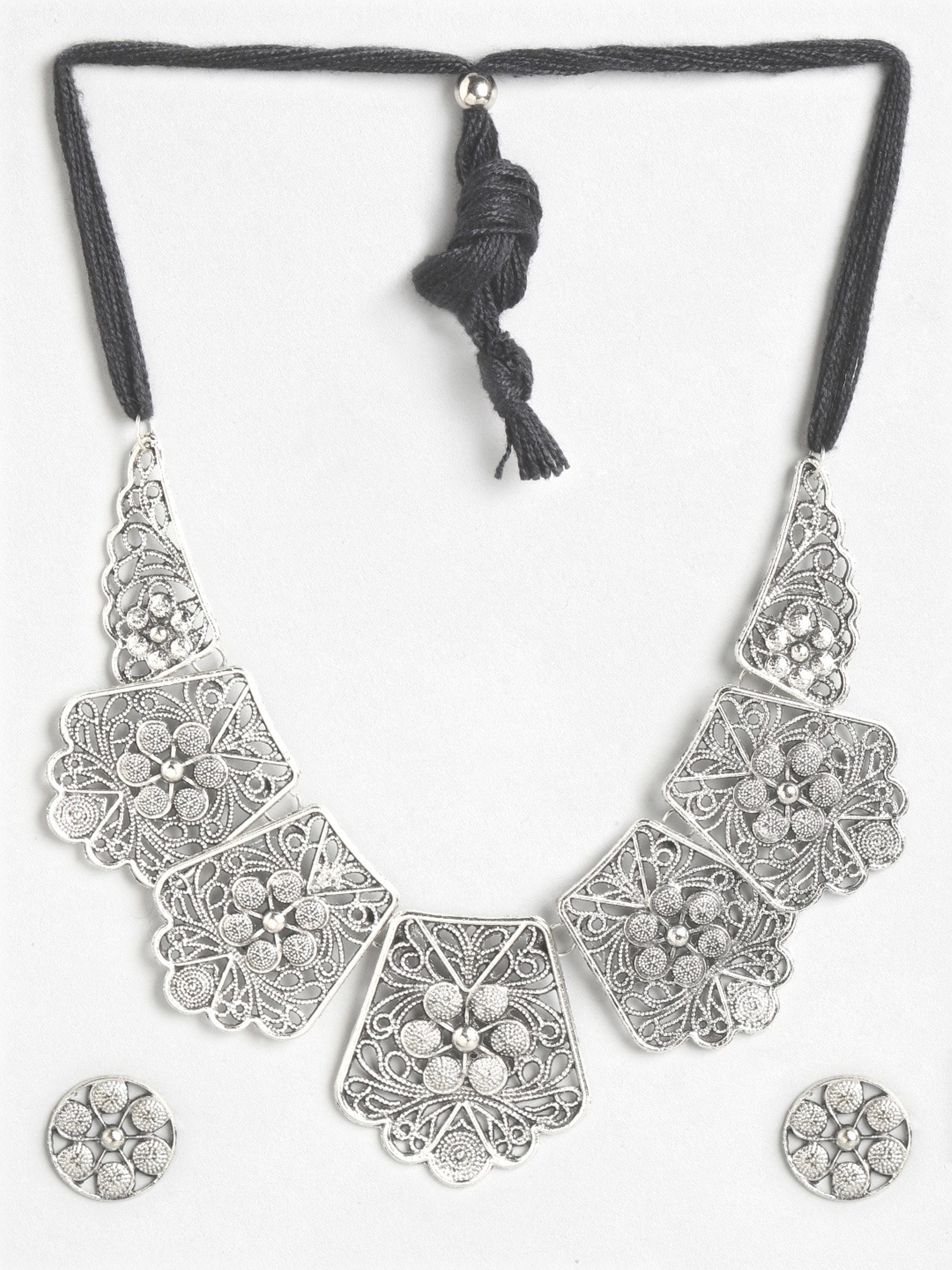 - Latest traditional oxidised silver necklace jewellery set