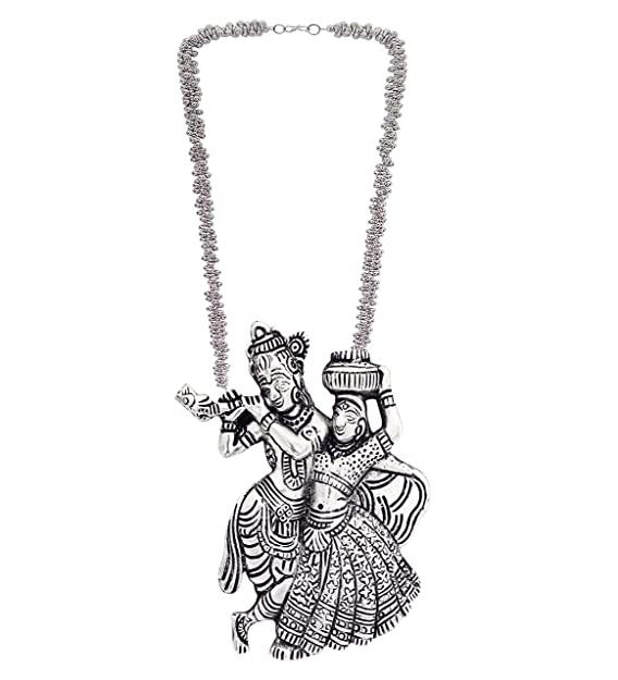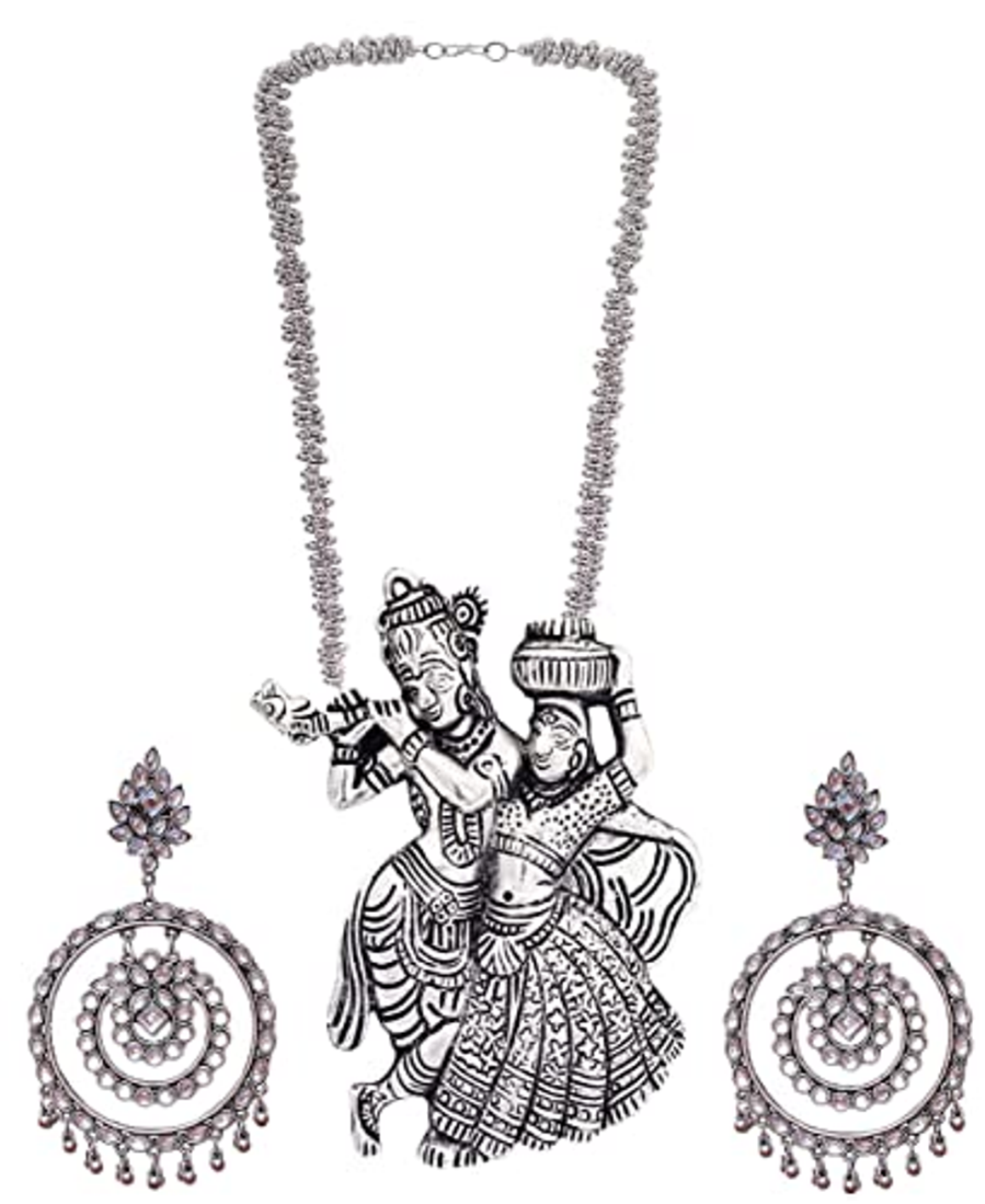- Classic look Silver Oxidised Necklace set with Jhumka earrings for women to wear,