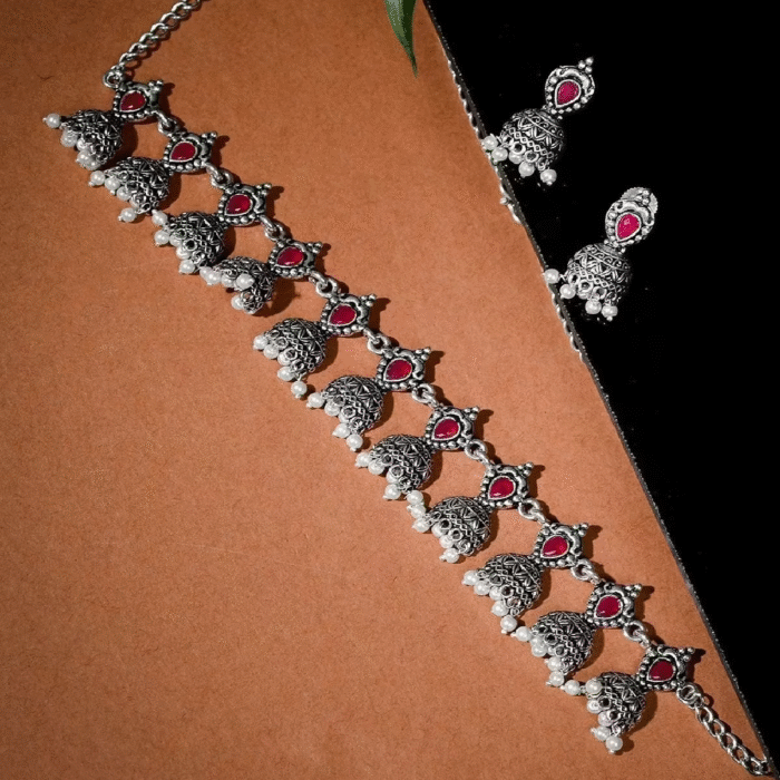 - Latest traditional oxidised silver necklace jewellery set
