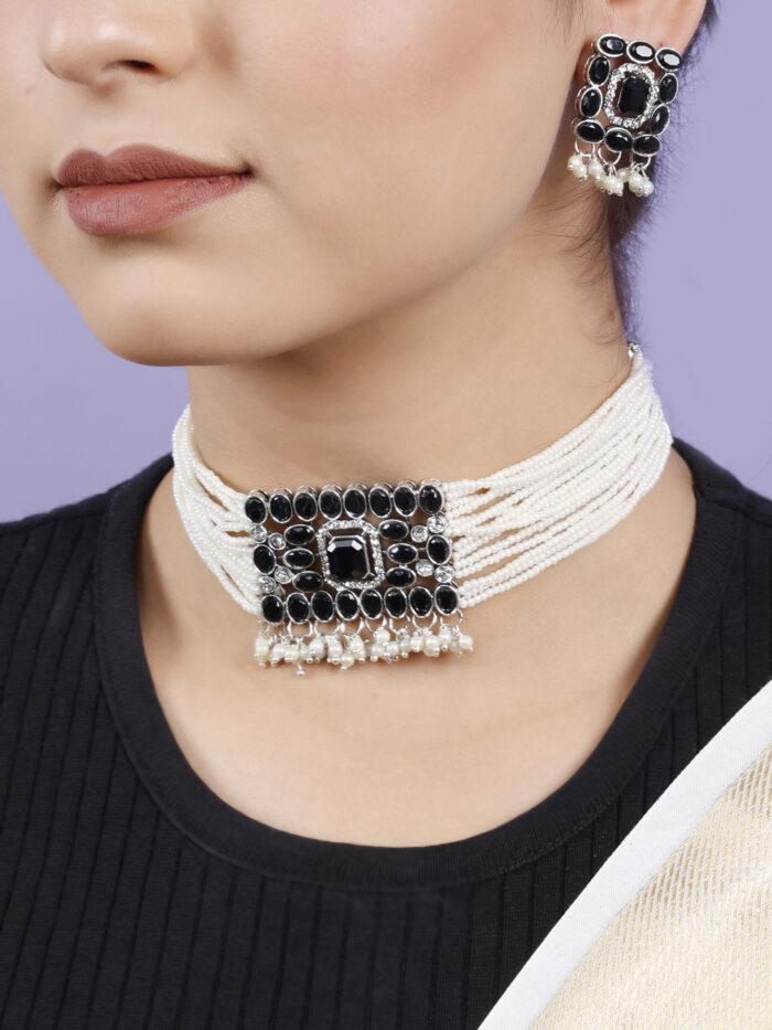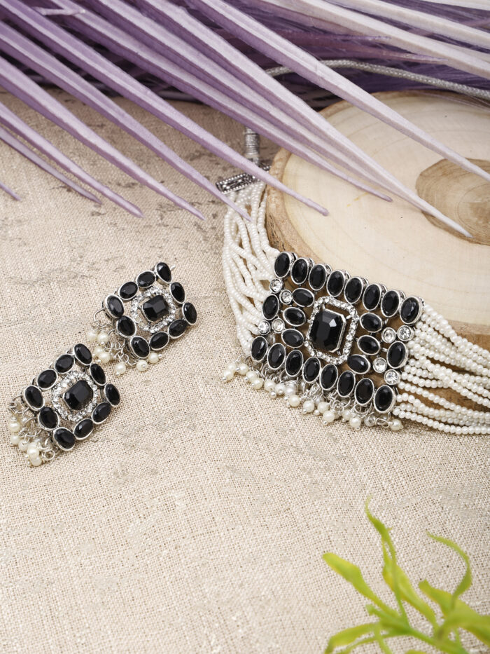 Black With Rectangular Big stone choker