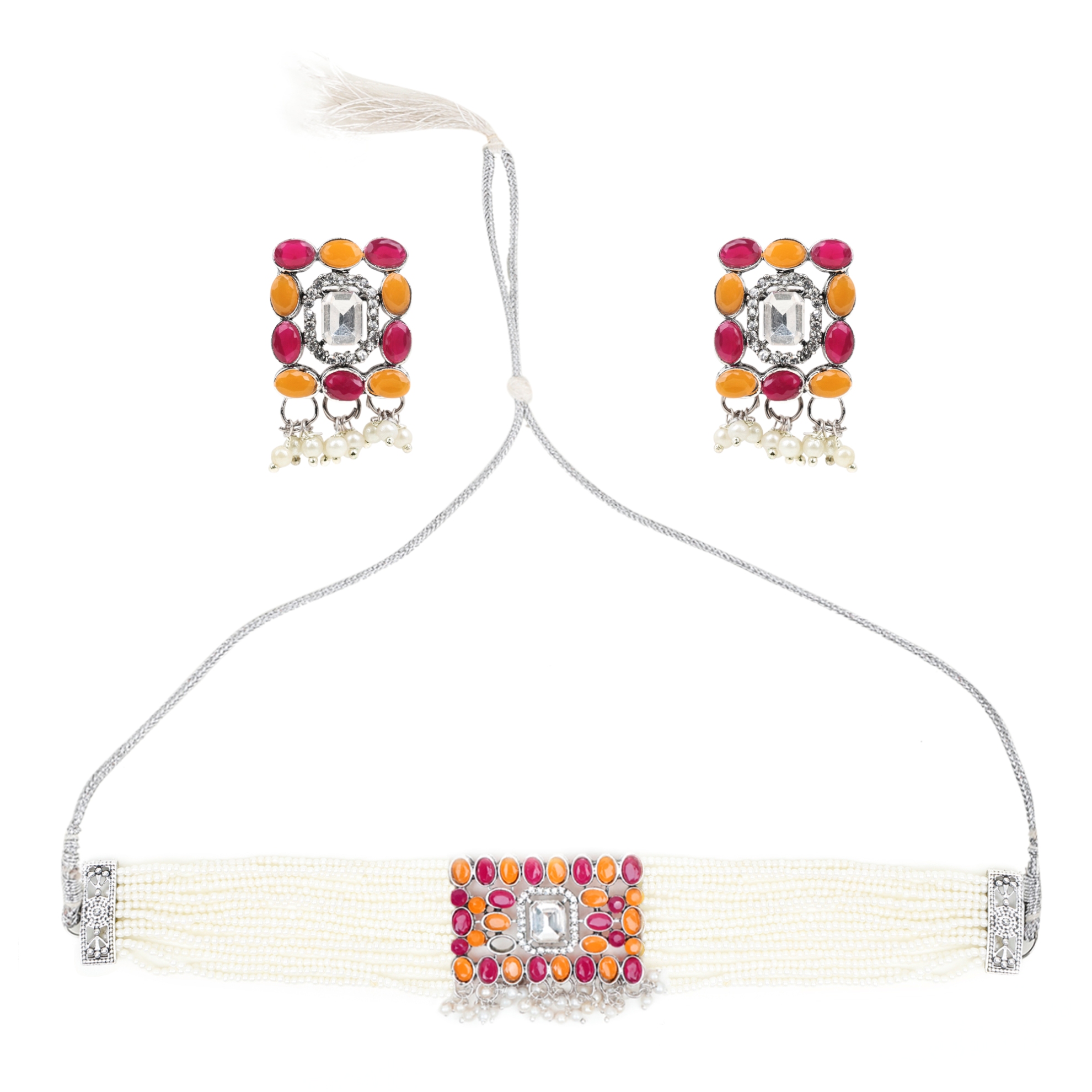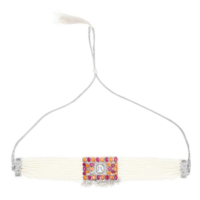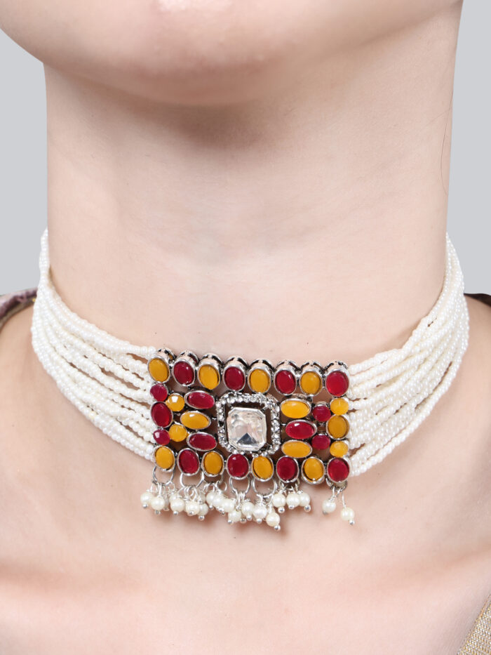 Small Moti Orange Maroon Square Choker